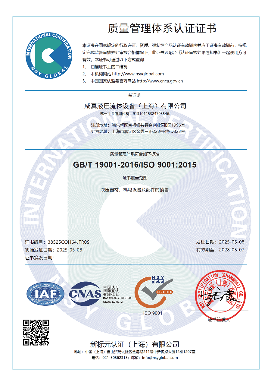 威真液壓流體設備(上海)有限公司是專業生產和經營各種液壓膠管總成、液壓接頭、不銹鋼流體連接件、精密鋼管、球閥、法蘭及其它液壓附件的企業,公司自創立以來一直致力為客戶提供完整的液壓、流體解決方案、努力打造“華東最大流體連接件超市”;始終堅持“客戶至上、技術爭先、求真務實、揚我國威”的企業宗旨。同時我們還是RYCO(澳大利亞萊科)品牌液壓軟管的授權代理商。我公司總部位于國際金融中心—上海,多年的液壓管件研發與生產經驗、專業的技術與服務隊伍為威真液壓打造行業一流企業提供了有力保障。目前我們已經通過ISO 9001:2015/ GB/T 19001-2016 質量體系認證,而我們的產品全部按照DIN2353、ISO8434、SAEJ514等國際質量體系標準進行設計、生產、檢測。我們重視產品質量,所以威真液壓今天已經成為業界成長飛快的公司,盡管如此,我們仍以一流的品質和良好的交貨能力為客戶提供細致入微的服務。